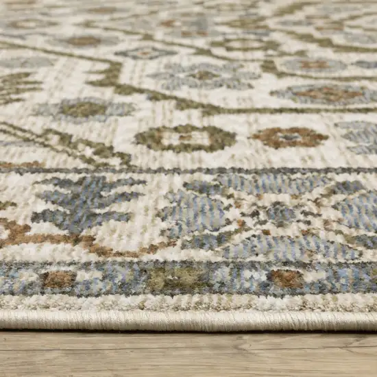 8' Ivory And Rust Floral Runner Rug With Fringe