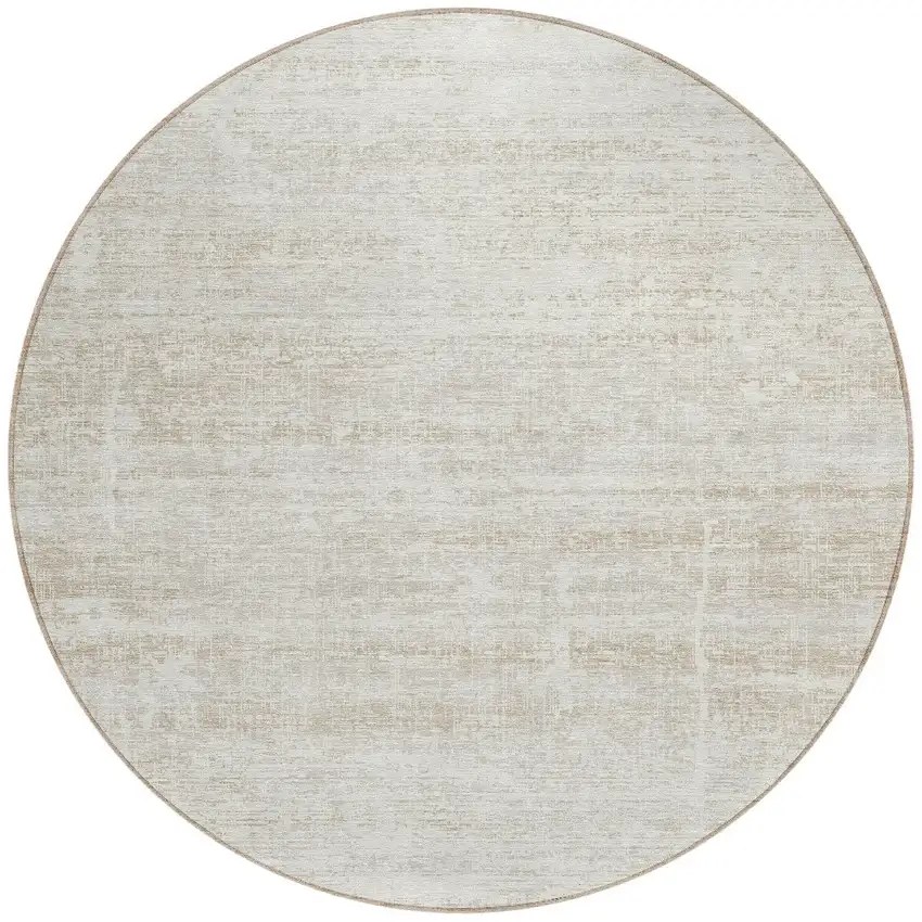 8' Ivory Beige And Tan Round Abstract Washable Indoor Outdoor Area Rug