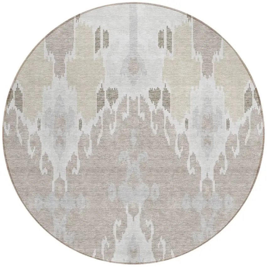 8' Ivory Beige And Taupe Round Ikat Washable Indoor Outdoor Area Rug