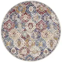 8' Ivory Black And Beige Geometric Washable Round Rug With UV Protection