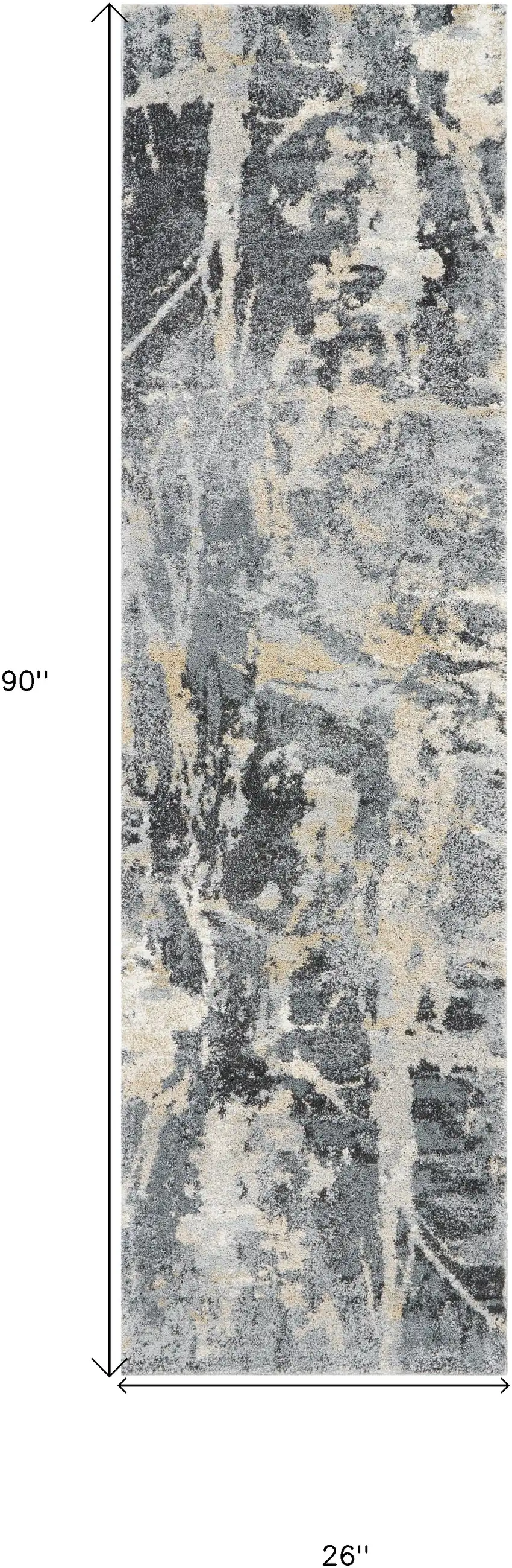8' Ivory Black and Gray Abstract Distressed Runner Rug