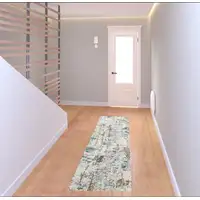 8' Ivory Green And Red Oriental Runner Rug With Fringe