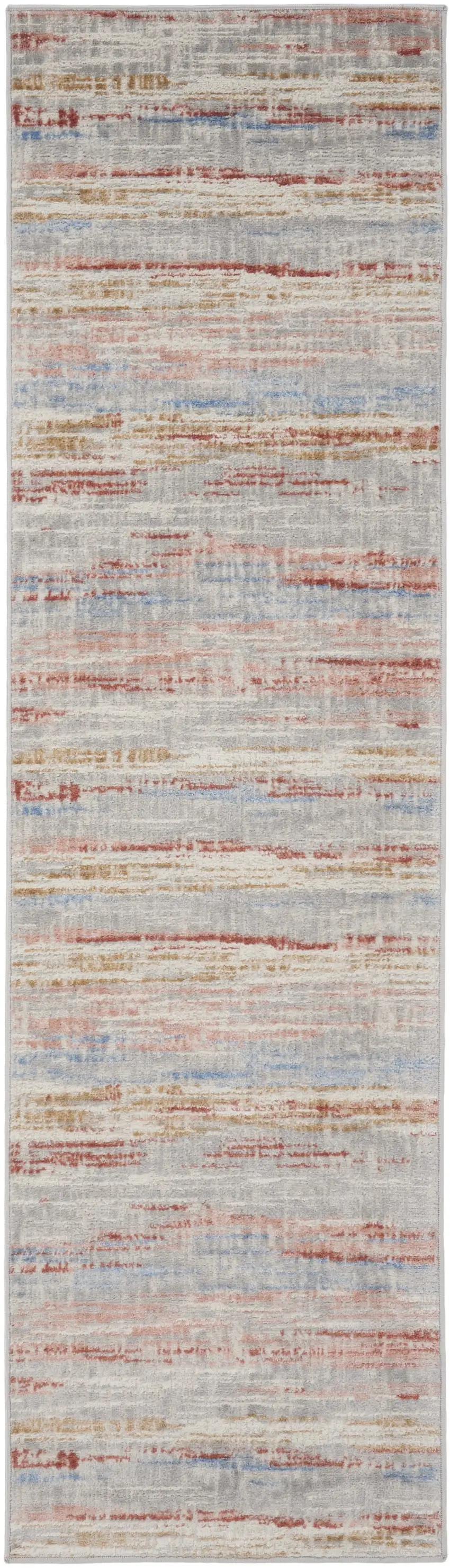 8' Ivory Red and Blue Abstract Non Skid Runner Rug