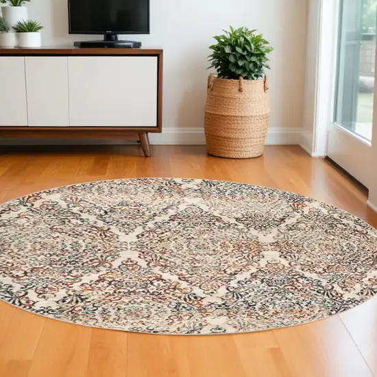 8' Ivory Round Oriental Dhurrie Area Rug