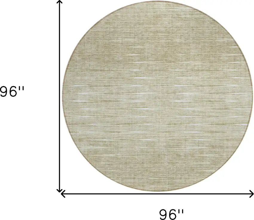 Set an inviting tone in your space with this 8-foot khaki and beige round abstract washable indoor outdoor area rug. This geometric round shaped rug features a abstract pattern in khaki and beige that combines a good looking print with a unique and updated shape. The mix of shape, color, and design gives this rug refreshing visual interest. Ideal for outdoor spaces or high traffic areas with kids and pets, this rug is made from heavy duty polyester that is stain resistant to help repel water, dirt, and stains. Makes a great way to dress up your patio, porch, or poolside, but also works well as a durable and easy to maintain option in the kitchen, family room, or mudroom. 96-inch h x 96-inch w x 0.19-inch d.