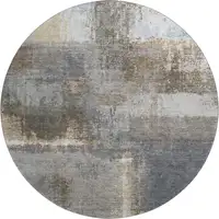 8' Khaki Gray And Beige Striped Washable Round Rug With UV Protection