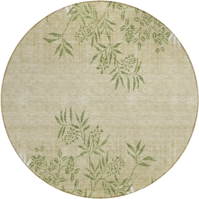 Set an inviting tone in your space with this 8-foot khaki ivory and green round floral washable indoor outdoor area rug. This geometric round shaped rug features a floral pattern in khaki, ivory, and green that combines a good looking print with a unique and updated shape. The mix of shape, color, and design gives this rug refreshing visual interest. Ideal for outdoor spaces or high traffic areas with kids and pets, this rug is made from heavy duty polyester that is stain resistant to help repel water, dirt, and stains. Versatile in use, durable, and easy to maintain, this rug is an ideal solution to add a decorative and inviting touch to your indoor or outdoor space. 96-inch h x 96-inch w x 0.19-inch d.
