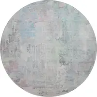 8' Lavender And Gray Geometric Washable Round Rug With UV Protection