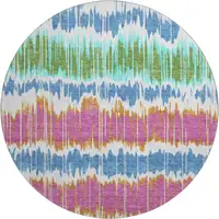 8' Lavender And Ivory Abstract Washable Round Rug With UV Protection