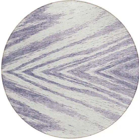 8' Lavender And Ivory Round Abstract Washable Indoor Outdoor Area Rug