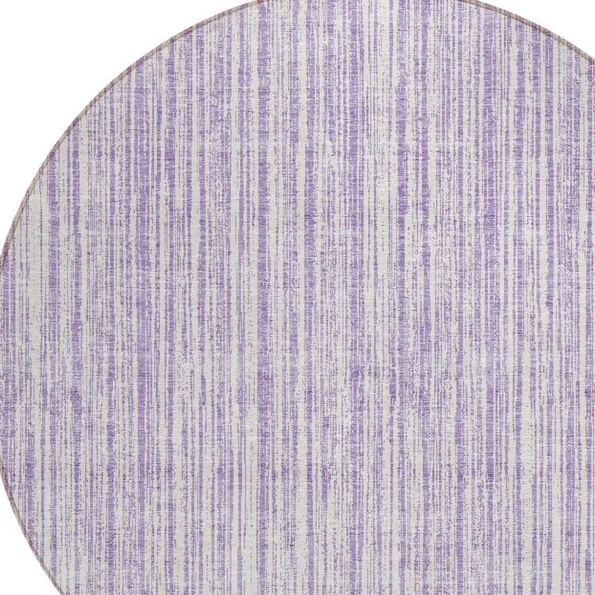 8' Lavender And Ivory Round Striped Washable Indoor Outdoor Area Rug