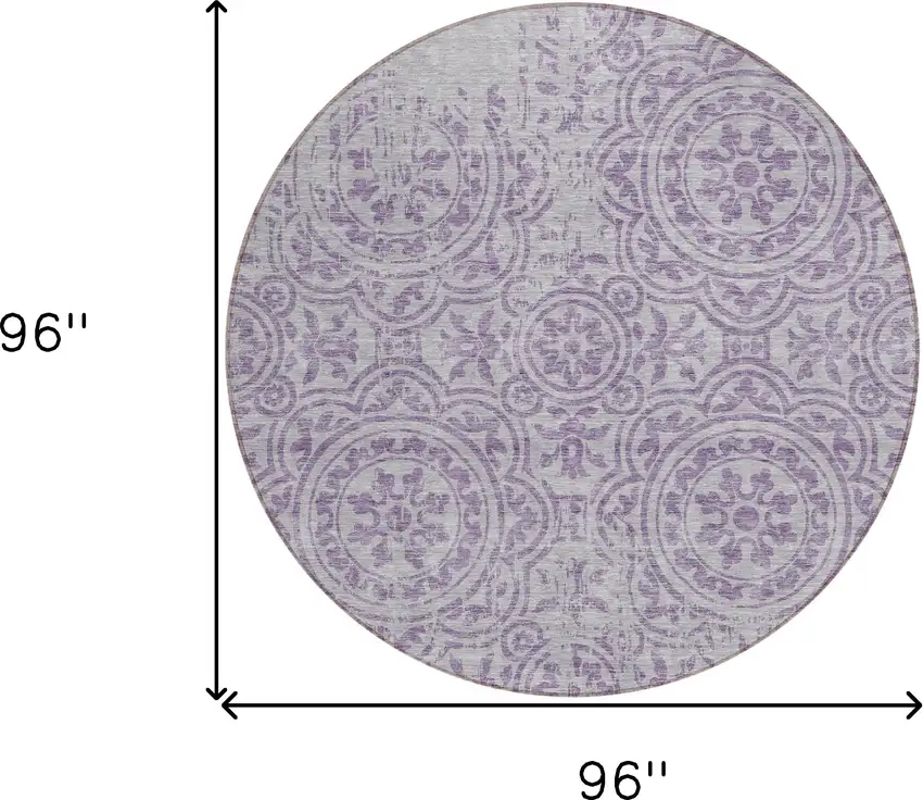8' Lavender And Lilac Round Medallion Washable Indoor Outdoor Area Rug