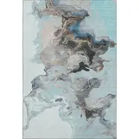 8' Lavender Gray And Ivory Abstract Washable Round Rug With UV Protection