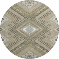 8' Lavender Gray And Ivory Floral Washable Round Rug With UV Protection