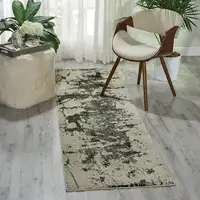 8' Light Gray And Black Geometric Indoor Outdoor Runner Rug