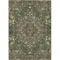 8' Linen And Plum Round Geometric Washable Indoor Outdoor Area Rug