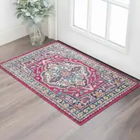 Set an inviting tone in your space with this 8-foot linen beige and gray plaid washable round rug with uv protection. Ideal for spaces with kids and pets, this rug is stain resistant to help repel dirt and spilled liquids. Built to last, this rug crafted from polyester fibers is known for its durability and long lasting appeal. Rugs are a great way to showcase your style, hide imperfections, warm your home and reduce noise. This larger sized, transitional styled rug is ready to create a focal point or statement piece in your room. 96.00-inch h x 96.00-inch w x 0.39-inch d.