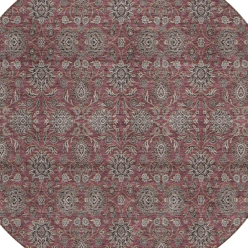 This 8-foot merlot gray and taupe round floral washable indoor outdoor area rug, is a great way to add warmth to a room. This geometric round shaped rug features a floral pattern in merlot, gray, and taupe that combines a good looking print with a unique and updated shape. The mix of shape, color, and design gives this rug refreshing visual interest. Ideal for outdoor spaces or high traffic areas with kids and pets, this rug is made from heavy duty polyester that is stain resistant to help repel water, dirt, and stains. Makes a great way to dress up your patio, porch, or poolside, but also works well as a durable and easy to maintain option in the kitchen, family room, or mudroom. 96-inch h x 96-inch w x 0.19-inch d.