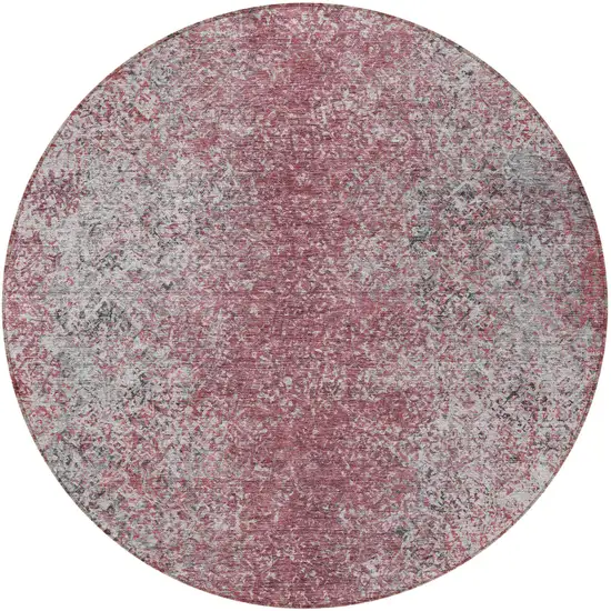 Add some artistry to your room with this 8-foot merlot silver and gray round oriental washable indoor outdoor area rug. This geometric round shaped rug features a oriental pattern in merlot, silver, and gray that combines a good looking print with a unique and updated shape. The mix of shape, color, and design gives this rug refreshing visual interest. Ideal for outdoor spaces or high traffic areas with kids and pets, this rug is made from heavy duty polyester that is stain resistant to help repel water, dirt, and stains. Makes a great way to dress up your patio, porch, or poolside, but also works well as a durable and easy to maintain option in the kitchen, family room, or mudroom. 96-inch h x 96-inch w x 0.19-inch d.