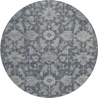 8' Mint Green And Gray Round Floral Washable Indoor Outdoor Area Rug