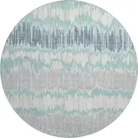 8' Navy Blue And Charcoal Damask Washable Round Rug With UV Protection
