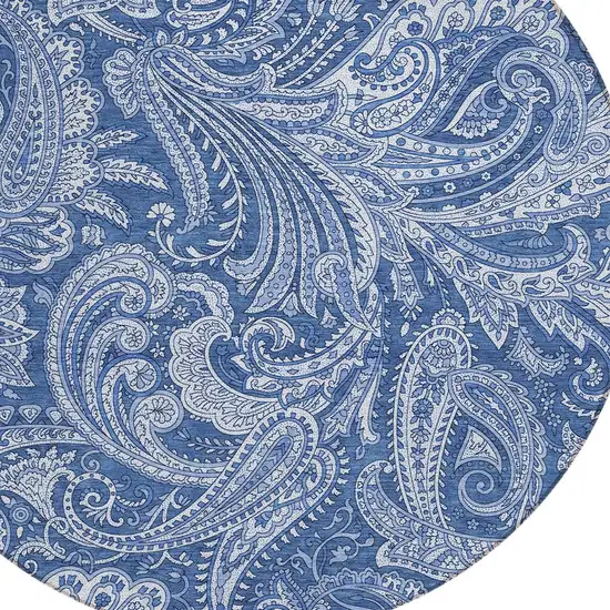 Add great coloration and comfortable texture to your space with this 8-foot navy blue and denim blue round paisley washable indoor outdoor area rug. This geometric round shaped rug features a paisley pattern in navy blue and denim blue that combines a good looking print with a unique and updated shape. The mix of shape, color, and design gives this rug refreshing visual interest. Ideal for outdoor spaces or high traffic areas with kids and pets, this rug is made from heavy duty polyester that is stain resistant to help repel water, dirt, and stains. Versatile in use, durable, and easy to maintain, this rug is an ideal solution to add a decorative and inviting touch to your indoor or outdoor space. 96-inch h x 96-inch w x 0.19-inch d.