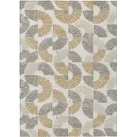 8' Navy Blue And Gold Round Geometric Washable Indoor Outdoor Area Rug
