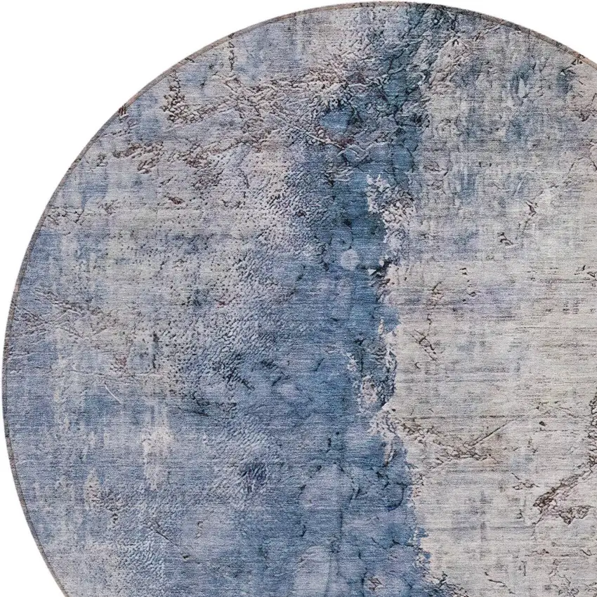 Set an inviting tone in your space with this 8-foot navy blue and gray round abstract washable indoor outdoor area rug. This geometric round shaped rug features a abstract pattern in navy blue and gray that combines a good looking print with a unique and updated shape. The mix of shape, color, and design gives this rug refreshing visual interest. Ideal for outdoor spaces or high traffic areas with kids and pets, this rug is made from heavy duty polyester that is stain resistant to help repel water, dirt, and stains. Versatile in use, durable, and easy to maintain, this rug is an ideal solution to add a decorative and inviting touch to your indoor or outdoor space. 96-inch h x 96-inch w x 0.19-inch d.