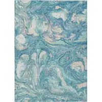 8' Navy Blue And Gray Round Floral Washable Indoor Outdoor Area Rug