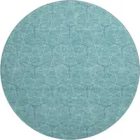 This 8-foot navy blue and ivory abstract geometric washable round rug with uv protection, is a great way to add warmth to a room. Ideal for spaces with kids and pets, this rug is stain resistant to help repel dirt and spilled liquids. Built to last, this rug crafted from polyester fibers is known for its durability and long lasting appeal. Rugs are a great way to showcase your style, hide imperfections, warm your home and reduce noise. This larger sized, transitional styled rug is ready to create a focal point or statement piece in your room. 96.00-inch h x 96.00-inch w x 0.39-inch d.