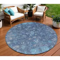 Add some artistry to your room with this 8-foot navy blue and teal blue round abstract washable indoor outdoor area rug. This geometric round shaped rug features a abstract pattern in navy blue and teal blue that combines a good looking print with a unique and updated shape. The mix of shape, color, and design gives this rug refreshing visual interest. Ideal for outdoor spaces or high traffic areas with kids and pets, this rug is made from heavy duty polyester that is stain resistant to help repel water, dirt, and stains. Makes a great way to dress up your patio, porch, or poolside, but also works well as a durable and easy to maintain option in the kitchen, family room, or mudroom. 96-inch h x 96-inch w x 0.19-inch d.