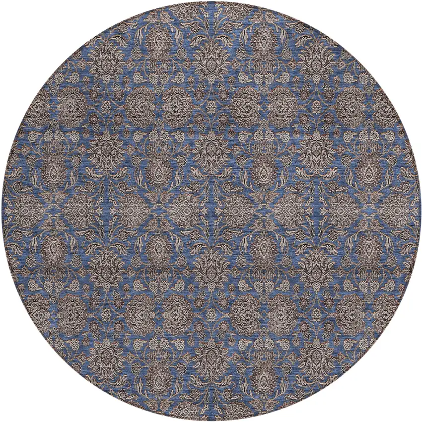 Set an inviting tone in your space with this 8-foot navy blue beige and taupe round floral washable indoor outdoor area rug. This geometric round shaped rug features a floral pattern in navy blue, beige, and taupe that combines a good looking print with a unique and updated shape. The mix of shape, color, and design gives this rug refreshing visual interest. Ideal for outdoor spaces or high traffic areas with kids and pets, this rug is made from heavy duty polyester that is stain resistant to help repel water, dirt, and stains. Makes a great way to dress up your patio, porch, or poolside, but also works well as a durable and easy to maintain option in the kitchen, family room, or mudroom. 96-inch h x 96-inch w x 0.19-inch d.