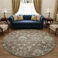 This 8-foot navy blue gold and ivory ikat washable round rug with uv protection, is a great way to add warmth to a room. Ideal for spaces with kids and pets, this rug is stain resistant to help repel dirt and spilled liquids. Built to last, this rug crafted from polyester fibers is known for its durability and long lasting appeal. Rugs are a great way to showcase your style, hide imperfections, warm your home and reduce noise. This larger sized, transitional styled rug is ready to create a focal point or statement piece in your room. 96.00-inch h x 96.00-inch w x 0.39-inch d.