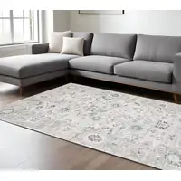 8' Navy Blue Ivory And Gray Plaid Washable Round Rug With UV Protection