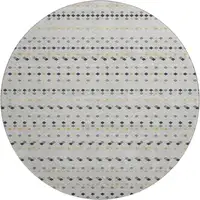 This 8-foot navy blue ivory and gray striped washable round rug with uv protection, is a great way to add warmth to a room. Ideal for spaces with kids and pets, this rug is stain resistant to help repel dirt and spilled liquids. Built to last, this rug crafted from polyester fibers is known for its durability and long lasting appeal. Rugs are a great way to showcase your style, hide imperfections, warm your home and reduce noise. This larger sized, transitional styled rug is ready to create a focal point or statement piece in your room. 96.00-inch h x 96.00-inch w x 0.39-inch d.