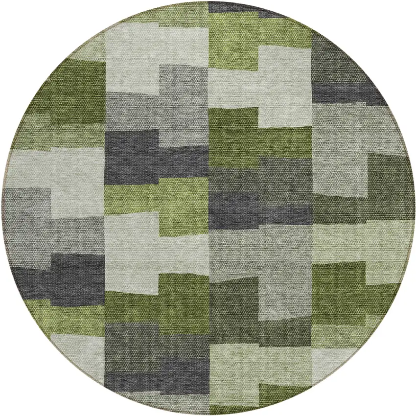 Add some artistry to your room with this 8-foot olive green and artichoke green round geometric washable indoor outdoor area rug. This geometric round shaped rug features a geometric pattern in olive green and artichoke green that combines a good looking print with a unique and updated shape. The mix of shape, color, and design gives this rug refreshing visual interest. Ideal for outdoor spaces or high traffic areas with kids and pets, this rug is made from heavy duty polyester that is stain resistant to help repel water, dirt, and stains. Makes a great way to dress up your patio, porch, or poolside, but also works well as a durable and easy to maintain option in the kitchen, family room, or mudroom. 96-inch h x 96-inch w x 0.19-inch d.