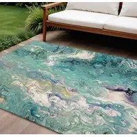 8' Olive Green And Beige Round Floral Washable Indoor Outdoor Area Rug