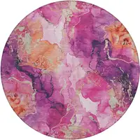 8' Olive Green And Black Round Geometric Washable Indoor Outdoor Area Rug