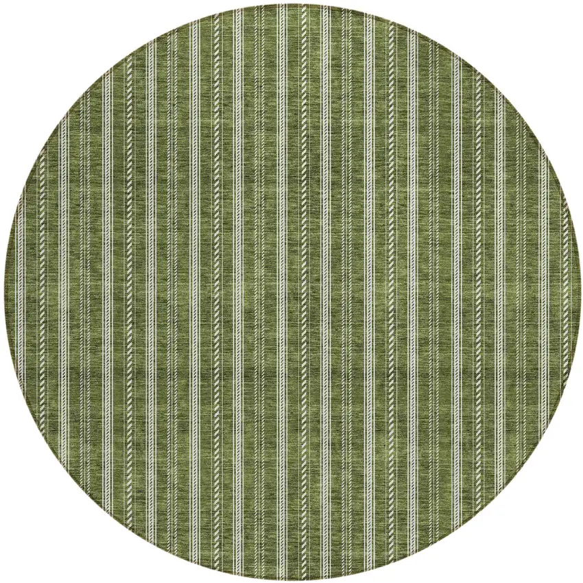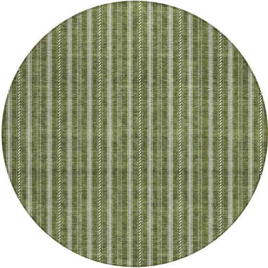 This 8-foot olive green and ivory round striped washable indoor outdoor area rug, is a great way to add warmth to a room. This geometric round shaped rug features a striped pattern in olive green and ivory that combines a good looking print with a unique and updated shape. The mix of shape, color, and design gives this rug refreshing visual interest. Ideal for outdoor spaces or high traffic areas with kids and pets, this rug is made from heavy duty polyester that is stain resistant to help repel water, dirt, and stains. Makes a great way to dress up your patio, porch, or poolside, but also works well as a durable and easy to maintain option in the kitchen, family room, or mudroom. 96-inch h x 96-inch w x 0.19-inch d.