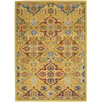 Add some artistry to your room with this 8-foot olive green gold and ivory ogee washable round rug with uv protection. Ideal for spaces with kids and pets, this rug is stain resistant to help repel dirt and spilled liquids. Built to last, this rug crafted from polyester fibers is known for its durability and long lasting appeal. Rugs are a great way to showcase your style, hide imperfections, warm your home and reduce noise. This larger sized, transitional styled rug is ready to create a focal point or statement piece in your room. 96.00-inch h x 96.00-inch w x 0.39-inch d.