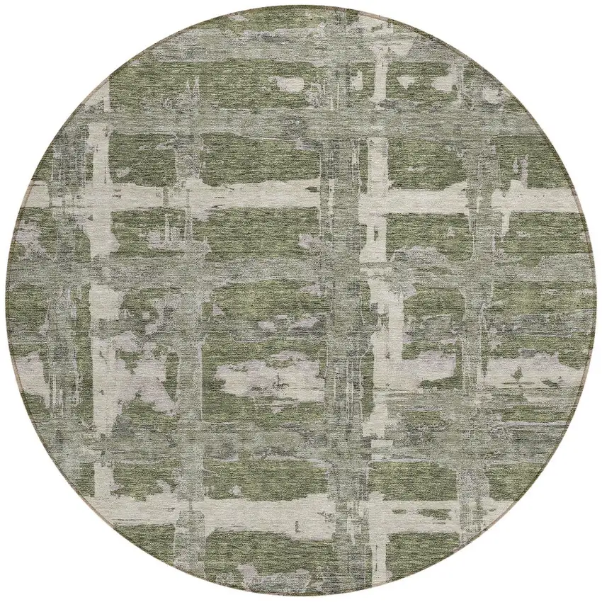 Add great coloration and comfortable texture to your space with this 8-foot olive green gray and beige round striped washable indoor outdoor area rug. This geometric round shaped rug features a striped pattern in olive green, gray, and beige that combines a good looking print with a unique and updated shape. The mix of shape, color, and design gives this rug refreshing visual interest. Ideal for outdoor spaces or high traffic areas with kids and pets, this rug is made from heavy duty polyester that is stain resistant to help repel water, dirt, and stains. Makes a great way to dress up your patio, porch, or poolside, but also works well as a durable and easy to maintain option in the kitchen, family room, or mudroom. 96-inch h x 96-inch w x 0.19-inch d.
