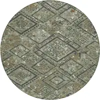 8' Orange And Gray Round Geometric Washable Indoor Outdoor Area Rug