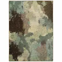 8' Orange Ivory And Blue Geometric Washable Round Rug With UV Protection