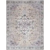 8' Orange Red And Gray Floral Medallion Washable Round Rug With UV Protection