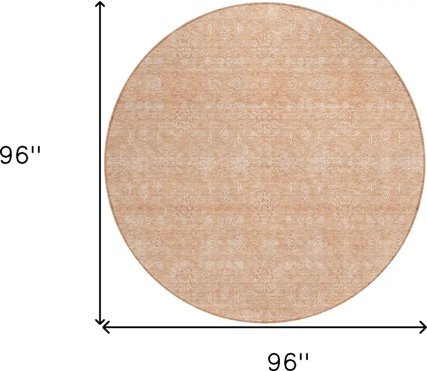 8' Peach And Ivory Round Floral Washable Indoor Outdoor Area Rug