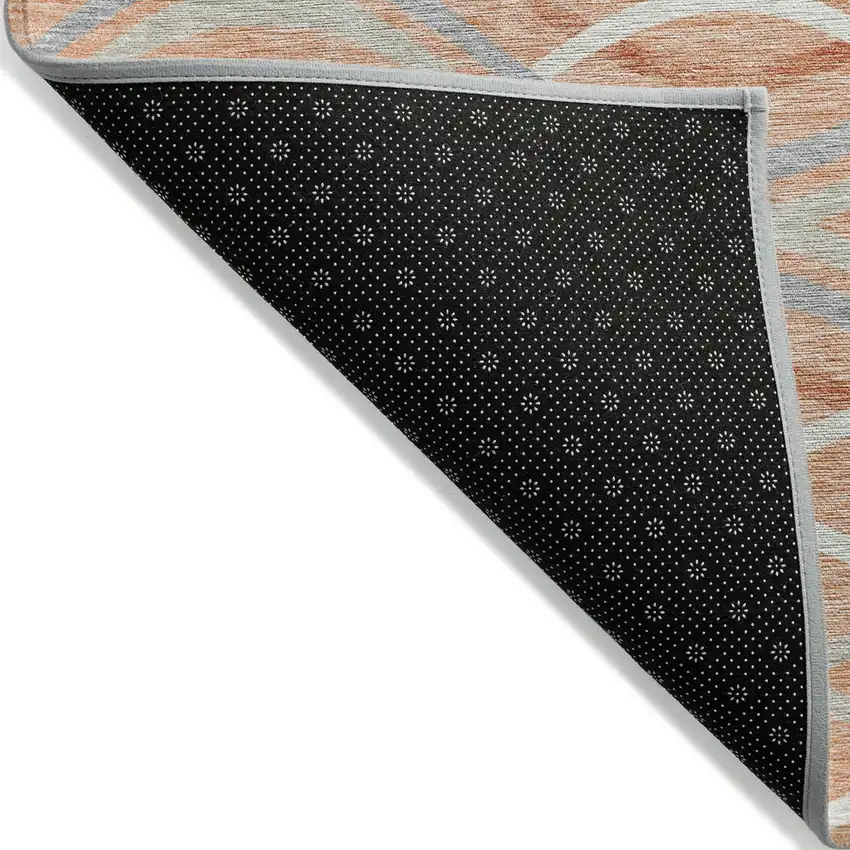 8' Peach Orange And Gray Round Abstract Washable Indoor Outdoor Area Rug