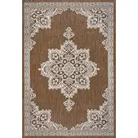 8' Pearl And Ivory Round Floral Washable Indoor Outdoor Area Rug