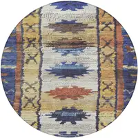 Add great coloration and comfortable texture to your space with this 8-foot pewter beige and gray round floral medallion washable indoor outdoor area rug. This geometric round shaped rug features a floral medallion pattern in pewter, beige, and gray that combines a good looking print with a unique and updated shape. The mix of shape, color, and design gives this rug refreshing visual interest. Ideal for outdoor spaces or high traffic areas with kids and pets, this rug is made from heavy duty polyester that is stain resistant to help repel water, dirt, and stains. Makes a great way to dress up your patio, porch, or poolside, but also works well as a durable and easy to maintain option in the kitchen, family room, or mudroom. 96-inch h x 96-inch w x 0.19-inch d.