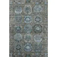 8' Pewter Ivory And Wheat Geometric Washable Round Rug With UV Protection