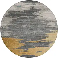 8' Pink And Copper Round Floral Washable Indoor Outdoor Area Rug